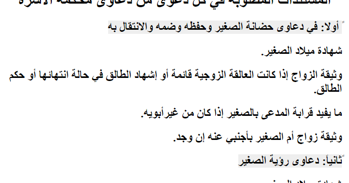 معلومات المحامي المستندات المطلوبة في كل دعوى من دعاوى محكمة الاسرة