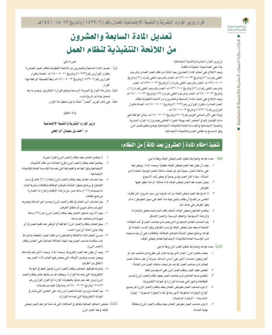 نظام العمل السعودي الجديد 1441 Pdf الم حيط